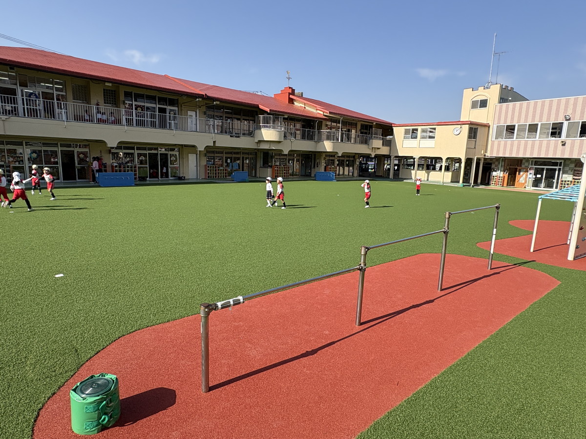創立55周年、卒園生が累計7700名を超える2026年では、この考えを更に前進させ、1700m2以上ある広い園庭全面を最新の素材を使った「人工芝」化として、子ども達がより安全に楽しく、様々な遊びの範囲を広げ、幼児期の環境を大切にしたいという思いで実施することにいたしました。