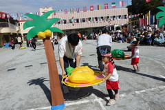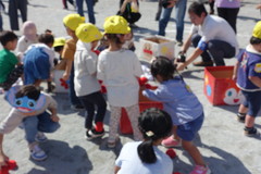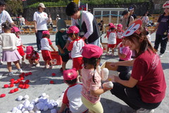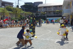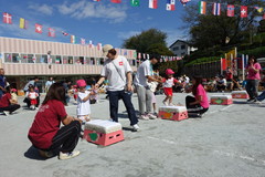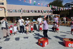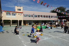 いちご&ひよこ運動会 10月12日(日) 幼稚園園庭にて 普段幼稚園でいっぱい遊び、お友達との関わりにより集団遊びの楽しさも体験しているいちご組やひよこ教室のお友達は、同じ学年として初めて全員集まり、広い園庭で「運動会」を行いました。リズム遊びやかけっこ、玉入れ等様々な遊びをみんなで楽しみ、秋の心地よい陽気のなか、からだを動かす楽しさをいっぱい味わうことができました。来年4月からは年少として更に様々な楽しい体験ができることと思います。 NEXT TOP PREV
