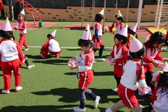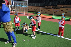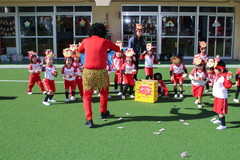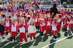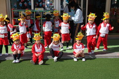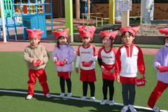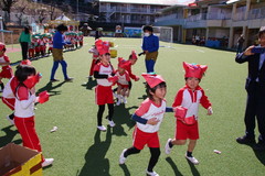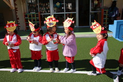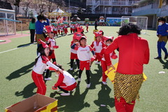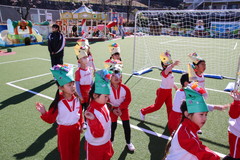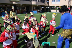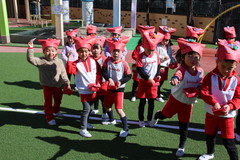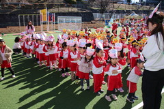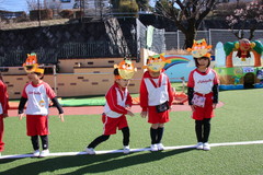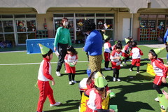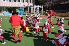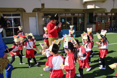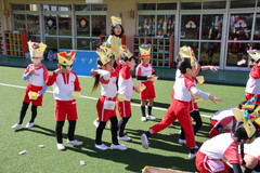 まめまき(全園児) 2月3日(火) 幼稚園園庭にて 幼稚園の広い園庭が全面ふかふかの人工芝になって、初めてのイベントとして節分の日にまめまきをいちご2歳児から年長まで全園児で行いました。今年も子ども達が保育のなかで製作した鬼のお面をかぶり、元気な声でまめをまいて、悪い鬼が出ていき、幸せがいっぱいやってきました。 NEXT TOP PREV