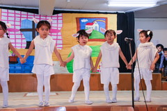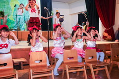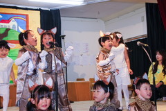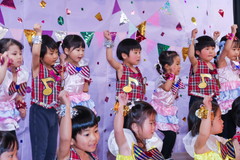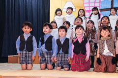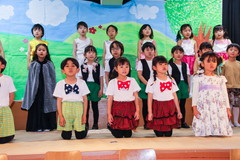 おゆうぎ会(年少~年長) 2月14日(土) 幼稚園ホールにて 1年間緑ケ丘幼稚園での様々な特色ある体験活動や広い園庭での伸び伸びとした遊びを通して、心身共に大きく成長した子ども達は、おゆうぎ会において「こんなに大きくなったよ!」と元気に楽しく表現活動を行いました。1年間の集大成にふさわしく、ダンスやうた、セリフ等を自信を持って取組むことができました。またYouTube限定ライブ配信では累計1800名の方にご覧いただきました。 年少 年中 年長 NEXT TOP PREV