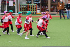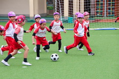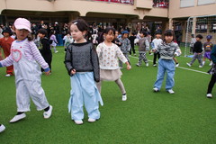 サッカー・ドッジボール大会、ダンス発表会 2月26日(木) 幼稚園園庭にて まもなく卒園式を迎える年長さんは、園生活最後のイベントクラス対抗サッカー・ドッジボールの試合やエイベックス講師リーコ先生によるダンス発表会に取組みました。生きる力が培われた年長さんは、園生活初めて全員私服になって、様々な振付けのあるダンスをテンポ良く楽しく踊ることができ、サッカーやドッジボールでも最後までボールを追いかけて頑張っていました。 NEXT TOP PREV