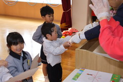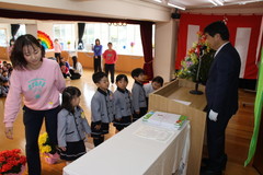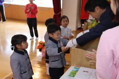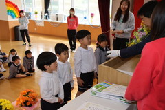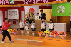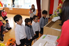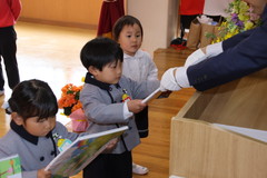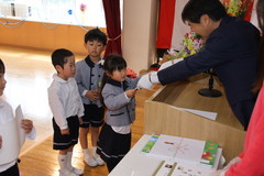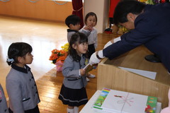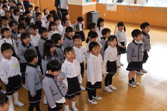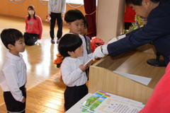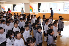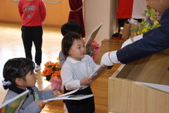 第54回終了式(在園児) 3月19日(木) 幼稚園ホールにて 終了式では前半いちご組と年少、後半年中と年長に分かれて幼稚園ホールにて行いました。どのお友達もお話をとても理解しながら聞け、1年間の成長をみんなで喜び合いました。また全員に「がんばりました賞」の授与や入賞者に「全国教育美術展」賞状の授与を行いました。「思い出のアルバム」のうたも上手に1年間を思い出しながら綺麗に歌うことができました。 NEXT TOP PREV