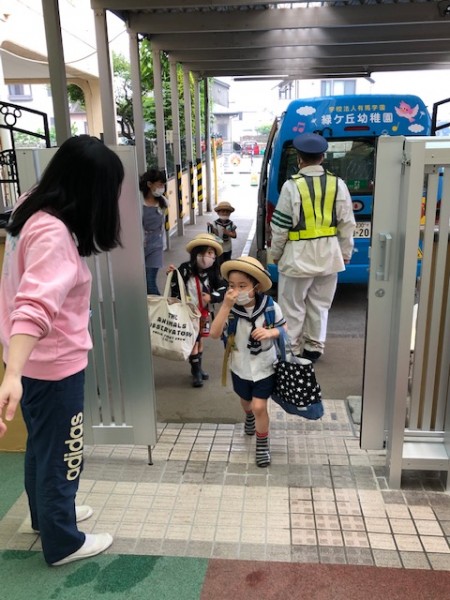 本日より学年ごとの分散登園が始まりました。年中さんが新年度初登園となり、バスから降りたお友達、歩きコースで来たお友達は、通用門で消毒をした後、先生と一緒に2階の保育室に行き、自分達でしっかり身のまわりのことができ、成長を感じました。きょうは1クラスを2部屋に分かれて保育を行い、できるだけ密を避けることに心がけました。明日は年少のお友達が初めて登園します。何もかもが初めてですが、幼稚園の先生が丁寧に優しく一つひとつご案内しますので、ぜひ安心していらして下さい。