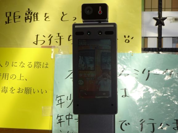 緑ケ丘幼稚園では新型コロナウイルス感染拡大防止のため、通用門付近でのアルコール消毒、検温、マスク着用の徹底を行っております。更にこの度通用門付近に、タブレット型AIサーマルカメラを設置いたしました。顔をあてていただければ、自動的に体温が表示されます。来園の際は、ご利用ください。