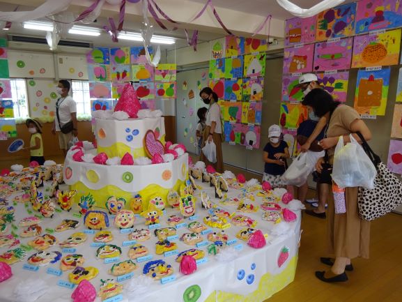 今年度に入って初めての大きなイベント「緑ケ丘フェスタ」が本日9月5日(土)三部制にて行われました。今年は新型コロナウイルス感染拡大防止のため、15クラスを縦割りの三部制という分散しての形をとりました。また食事関係の提供の模擬店は一切行わず、子ども達の創造性豊かな作品展と共に、ヨーヨーやおもちゃすくい、スタンプラリー、お母様有志の手芸品等のお店等で楽しんでいただきました。また、今年も緑ケ丘マスコットキャラクター「きらりん」ちゃんも各部登場し、コロナ禍でのイベントとしては大成功となりました。お客様も検温や消毒、そして距離をとっていただき、本当にありがとうございました。