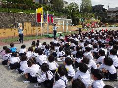 今週は天気の良い日が続き、新緑に囲まれた広い園庭で、子ども達は元気いっぱいに遊び、新しいクラスにもだいぶ慣れてきました。緑ケ丘幼稚園の園庭には様々な遊具やお砂場のほかに、ビオトープがあり、ただいま大量のオタマジャクシが泳ぎ、子ども達は目を輝かして観察しています。日に日に大きくなり、まもなく手足が出てきて、生きた学習となっています。きょうは今年度初めての避難訓練が行われました。年少のお友達はテラスから見学しました。年長・年中のお友達はしっかりと避難でき、お話もよく聞いていました。週末はお家でゆっくり過ごし、また来週月曜日からニコニコ笑顔で来てください。
