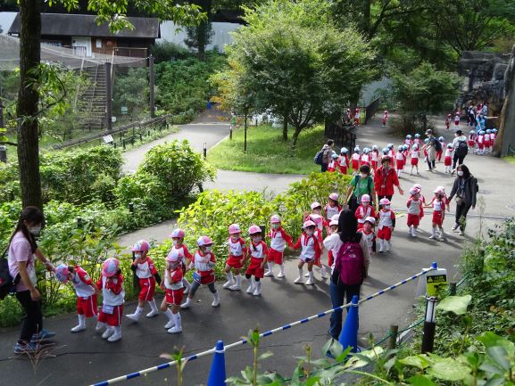 本日は全園児秋の遠足として、多摩動物公園へ行きました。子ども達は通常のバスコースや歩きコースで登園後、幼稚園からチャーターしたバスで多摩動物公園へ向かいました。心配された天気も時間を追うごとに晴れ間が見られ、子ども達にとっては今年度初の遠足で、とても楽しく実りある遠足となりました。緑ケ丘幼稚園の遠足はすべて、役員さん以外は子ども達だけで行きますが、しっかりと歩き、自分のことを自分で頑張り、お友達とのコミュニケーションがたくさんできる、自立性や社会性につながる教育効果となっています。