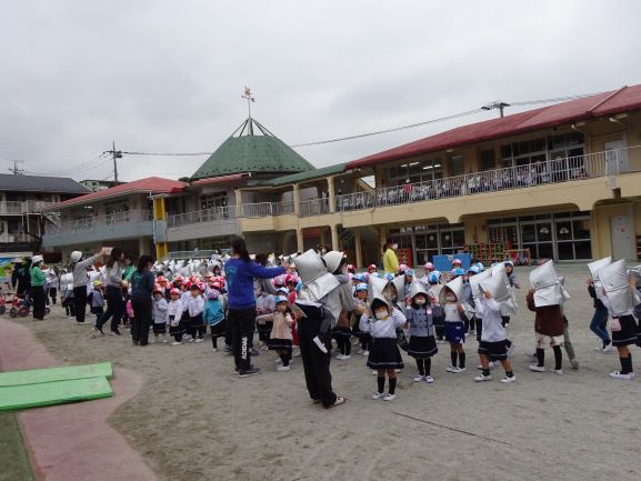 きょうは曇り空の肌寒い一日でしたが、子ども達は元気いっぱいで朝から広い園庭で伸び伸びと遊び、音楽会の練習にも楽しく参加していました。午後には全園児で火災の避難訓練を行いました。避難訓練は毎月行っていますが、いのちを守る大切さをよく理解でき、真剣に避難しお話もよく聞くことができていました。週末もしっかりと手洗いをして、月曜日からも元気に登園してください。