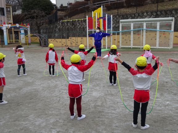 1月も残りわずかとなり寒中の季節ですが、子ども達はとても元気で、お休みが誰もいないクラスがとても多い本日です。年長・年中は安全教育をした後に、外遊びでなわとびが始まりました。朝から元気に跳んでいる姿が数多く見られます。また体育指導でも、基礎から学び、それぞれ目標を持って頑張っています。緑ケ丘幼稚園ならではの広い園庭のため、いろいろな遊びを思い思いに行い、心身の成長につながっています。