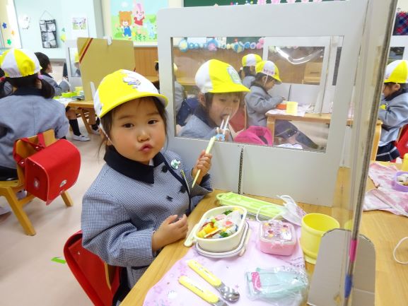 新年度に入って昨日からお弁当・給食のある一日保育となりました。子ども達はゆっくりと一日を過ごすことができ、お昼もみんなとても美味しく食べています。いっぱい食べて、大きくなってください。