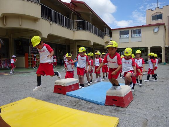 本日予定されていた年中さんのプールは低温のため、通常の体育指導となりました。子ども達はマットや跳び箱にとても元気に取組んでいました。立派なお兄さん、お姉さんになった年中さんです。