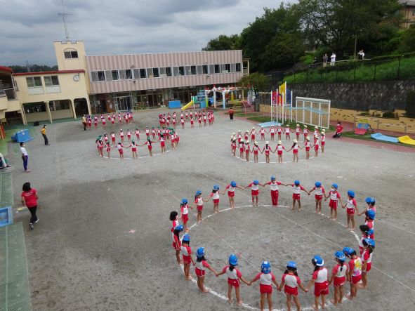 今週は祝日が多いため、3日間の保育ですが子ども達は登園日にはとても元気に楽しく園生活を送り、様々な活動にも意欲的に取り組んでいます。最後の運動会となる年長さんは、組体操やマーチングバンドそしてリレー等に学年がひとつのワンチームとなって、とてもよく頑張り、これらの体験を通して人生における生き抜く力がしっかりと培われます。今年の年長マーチングバンドのテーマは「アメリカ」で、「セントルイス・ブルースマーチ」「イエスタディ・ワンス・モア」「小さな世界」のメドレーを年長全員のオーケストラで演奏します。また組体操もマーチングバンドも広い園庭に5クラスの五輪が描かれます。