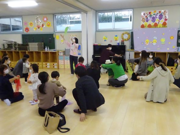 昨日11月9日ひよこ教室体験会が行われ、雨にもかからわらず多数の方にお越しいただきました。今回はたいそう、えいごそしてリトミック体験が行われましたが、新しく始まるリトミックでは手遊び、リズム遊び、うた、絵本等を優しく語りかけるような先生の言葉がけに、とても楽しく心が温まる時間となりました。2歳という大切な時期に様々な体験を少しずつ楽しみながら行うことが人格形成にとても良い影響を与えると思います。