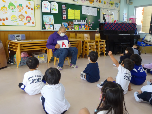 明日から12月を迎え、朝晩は冷え込みを感じる日々となりましたが、日中は広い園庭で暖かい陽だまりができ、子ども達は元気いっぱいに楽しく過ごしていました。今日は年少さんもアレックス先生の英会話指導があり、子ども達はとても集中して楽しく参加していました。すべてネイティブによる英会話ですが、子ども達は聞いて理解しようという姿勢が多く見られ、成長を感じられました。緑ケ丘幼稚園における特色ある多様な体験が、子ども達の今後の人生における生き抜く力をしっかりと培っています。