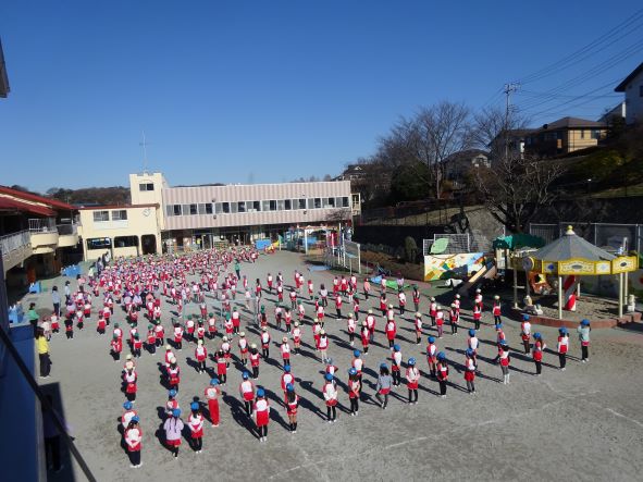 今朝の冷え込みは厳しかったものの、日中は穏やかな陽気となり、子ども達は朝から広い園庭で伸び伸びと遊んでいました。きょうは2学期終業式で、広い園庭で全員が並びお話をとてもよく聞け、2学期に頑張ったこと、大きくなったことを楽しみながら振り返ることができました。年明けの1月11日の始業式には元気に来てくれることを楽しみにしています。なお明日12月23日(木)から28日(火)まで、1月4日(火)から7日(金)まで毎日午後6時30分まで預かり保育を実施いたします。冬休み預かり保育中は、原則としてご希望の方には「給食」を注文することができます。皆様方で良いお年をお迎えください。