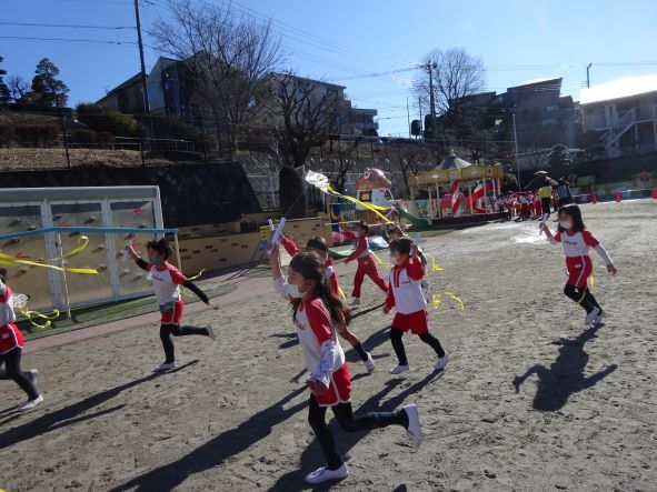 きょうの年長さんかがくタイムは「紙だけで作った凧をあげよう」がテーマで、紙の性質を様々な実験により学び、実際に紙だけで凧を作り、外でたこあげをしました。天気も良く、みんな元気に走り回って楽しんでいました。お話をよく聞き、考え、意見を出し合う、学びの姿勢が培われている年長さん、小学校へ行っても様々なことに興味関心を持って頑張って欲しいと願っています。