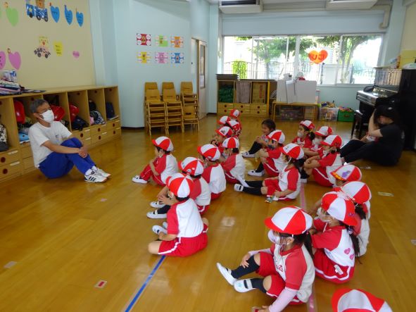 広い園庭には大きな鯉のぼりが泳ぎ、新緑の爽やかな季節のなか、子ども達はこの3週間とても元気に過ごし、新しいことにも前向きに楽しく頑張ることができました。年少さんも今日初めての体育指導が行われ、成田先生とリズム体操を目をキラキラ輝かして取り組み、からだを動かす楽しさをたくさん体験できました。明日からの7連休では元気にお過ごしいただき、5月6日(金)からまたにこにこ笑顔で登園してください。きょうは全園児に母の会より「かしわもち」がいただけます。