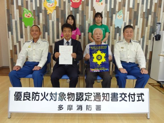 東京消防庁多摩消防署長より「優良防火対象物」の認定を受けました