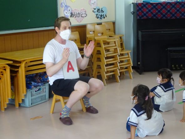 2学期に入って子ども達も様々な活動に楽しく取り組んでいます。年少さんも7月に英会話指導が始まり、昨日2回目の指導がありました。アレックス先生が産休のため、しばらくウイル先生(オーストラリアご出身)に来ていただいておりますが、年少さんもにこにこしながら、とても楽しく参加することができました。幼児期における英会話指導は、異文化に親しみ、本物の英語をたくさん聞き、からだを使っていっぱい遊び、幅広い人間形成につながっています。広い園庭で元気に遊び、豊富な自然に触れながら、多様な体験をすることが、人生における生き抜く力を培っています。