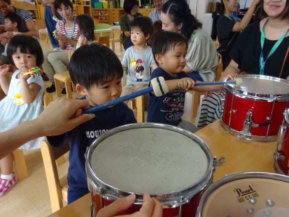 今日は朝から涼しく、過ごしやすい一日で、子ども達は広い園庭でいっぱい遊び、一斉保育のなかでは、誕生会(年長)や運動会の練習等、元気に楽しく過ごしていました。2学期が始まってから2週間経ちましたが、子ども達は日に日に心身共に成長しているように感じられます。連休明けの9月17日(火)午前10時より、来年度緑ケ丘幼稚園ご入園、ひよこ教室ご入会予定の方を対象に、見学説明会が行われます。広い園庭と充実した施設設備で過ごす活気ある子ども達の様子をぜひご覧ください。駐車場も完備しておりますので、お気軽にどうぞ。写真はひよこ教室でのリズム遊びの様子です。