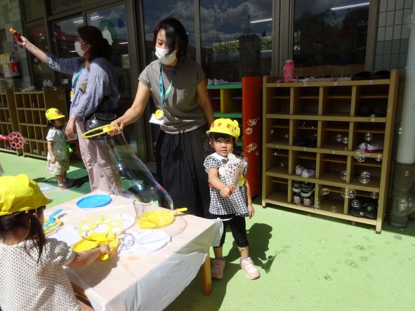 > ひよこ教室では「しゃぼんだま」を楽しんでいます