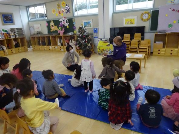 ひよこ教室えいごコースでは、アレックス先生と楽しく様々な遊びをしています。今週はクリスマスにちなみクリスマスの絵本をで読んでもらったり、パズルをしたり楽しいひと時となりました。すべて英語ですが、子ども達はじっと集中して聞いたり、遊ぶことができ、白紙の状態の幼児期における多様な体験の大切さを感じております。