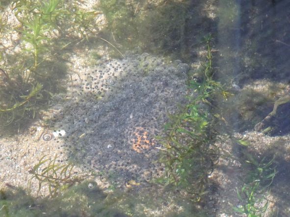 幼稚園のビオトープに早くもカエルさんが卵を産みました