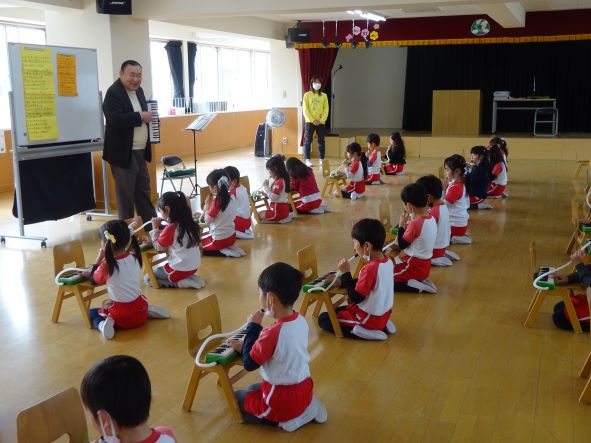 今年度も残り保育日数10日となり、子ども達は今のクラスを思う存分楽しんでいます。年長さんは音楽指導も本日で園生活最後となり、うたや鍵盤ハーモニカを自信を持って楽しんでいました。幼稚園では、うたを気持ちや意味を理解しながら情感豊かに歌うことを覚え、鍵盤ハーモニカや楽器では様々な音が出ることに感動し、音階に親しむことができました。そしてお話を聞く力や集中力、そしてレジリエンス(対応力)やグリット(最後までやり抜く力)等非認知能力である「生きる力」がしっかり培われました。緑ケ丘の卒園生は小学校や中学校においても音楽や運動様々なジャンルでリーダー的に活躍しています。