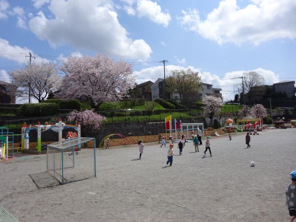 春休みファミリークラス(預かり保育)ではたくさんのお友達が元気に花々に囲まれた広い園庭で遊んでいます