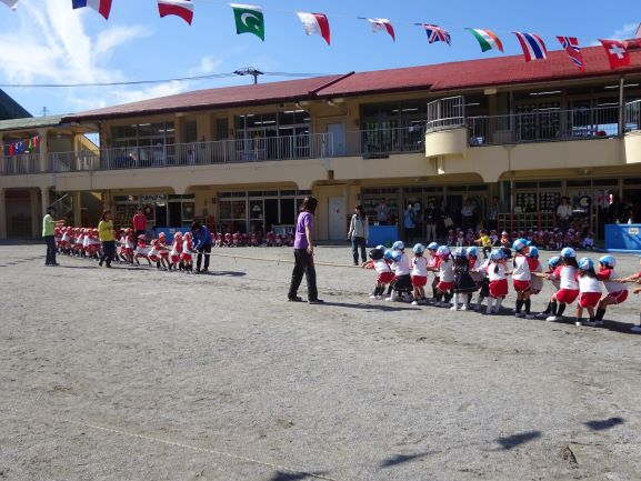 各学年の運動会が終わり、達成感、充実感に溢れた子ども達は休み明けの本日元気ににこにこ笑顔で登園し、久しぶりに朝から青空の天気のなか、広い園庭で元気に遊んでいました。10月生まれの年少お誕生会では、みんな心身共に大きく成長し、お話もよく聞け、お互いに大きくなったことを心からお祝いしている姿が見られました。年少さんは園庭でつなひきもしました。明日は全園児幼稚園農園までお散歩し、さつまいも掘りをする予定です。秋の自然に親しみ、秋の実りを味わう良い体験となることと思います。