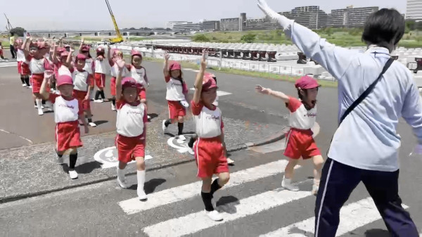 きょうは予報通り暑い一日となり、子ども達はできるだけ薄着で適宜水分補給をしながら、楽しく元気に過ごしていました。幼稚園広い園庭に4か所ある全自動式スプリンクラーが早くも大活躍の一日でした。年長ふじ、ばら組さんは、幼稚園から大型観光バスに乗って、多摩市交通公園に行き、交通安全の大切なお話を聞くことができました。明日18日(木)は引き続きうめ、きく組さんが大型観光バスで交通公園に行きます。