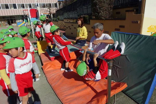 日に日に朝晩の冷え込みが感じられる11月最終日となりました。子ども達は全面に日が当たっている広い園庭で元気に伸び伸びと遊んでいました。引き続き元気にからだを動かし遊び、音楽発表会の練習や様々な活動にも意欲的に取り組んでいます。各お部屋やホールからはどなたも聴いたことのあるクラシック曲も沢山聴こえてきます。クラスが一つになり、目標に向けて頑張る姿勢がとてもよく見られます。また本日の年中体育指導では、逆上がりを頑張っていました。人生における「生きる力」が培われています。