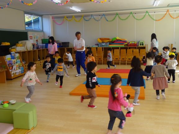音楽発表会前としては最後の一日保育では、子ども達は元気に遊び、練習をする時は堂々と自分達の成長を実感しながら楽しく頑張っていました。明日は午前保育で、午後から教職員はどりーむホールに向かい、今まで練習してきた子ども達が楽しく、安全に素晴らしい思い出ができるよう、環境整備をしてきますので、よろしくお願いいたします。幼稚園で使っている大小様々な楽器を4トン車でお引越しします。幼稚園の音楽会としては本物仕様の感動的な音楽会となると思います。なお、今年度から始まったひよこたいそうコース、えいごコースは大好評で、今ではママから離れて子ども達だけで楽しめています。今日の成田先生のたいそうコースもリズム遊びをしたり、マットのまわりをくるくる回ったり、からだを動かす楽しさを思う存分体験できています。
