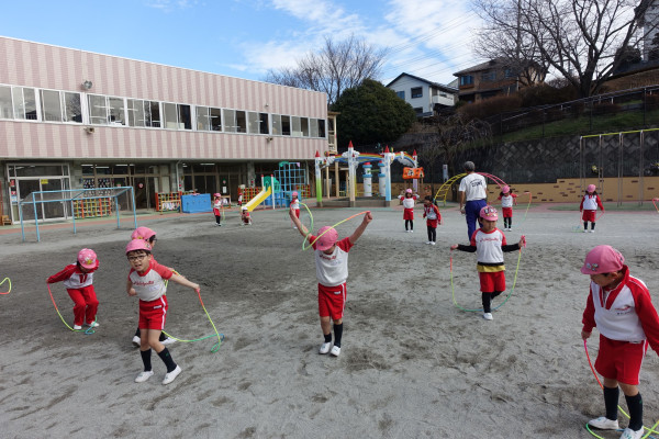 寒い毎日が続いていますが、子ども達は園庭全面に日が当たり始める朝9時頃から外に出始め、元気に外遊びを行っています。本日の年中体育指導では、成田先生からなわとびの指導を受け、なわの安全な使い方や遊び方をとても楽しく行うことができました。本日の帰りの外遊びから年長・年中は、安全教育をしっかり受けた後に縄跳びも始まっています。寒い中でもからだを元気に動かし、健康なからだを育成しています。また本日年長2月生まれのお誕生会が行われましたが、お話を聞く姿勢やお友達を心からお祝いする気持ち、そして歌もとてもきれいに歌え、まもなく小学生ということを成長のなかで実感いたしました。3学期もいよいよ残り2か月となりました。一日一日を大切に、更に楽しい思い出をいっぱい作ってほしいと願っています。