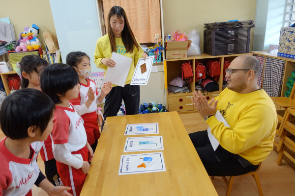 今年度の保育日数も残り20日となりました。引き続き子ども達にとって楽しく、安全に様々な体験を通して素晴らしい思い出ができるよう、配慮してまいります。今日は年長さんが園生活最後のアレックス先生による英会話指導でした。遊びのなかで楽しくうたを歌ったり、カードを使ったり、自然と英語や異文化に親しむことができました。