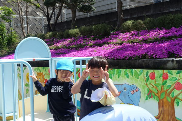 幼稚園の広い園庭を取り囲む木々も新緑に覆われ、春真っ盛りの季節となってきました。幼稚園の北側にある芝桜も見ごろを迎え、子ども達は様々な自然のなか、元気に遊んでいます。新年度スタートから1週間が過ぎ、明日4月17日(水)からお弁当・給食のある一日保育となります。幼稚園生活もゆったりとでき、遊びの楽しさも実感する頃となってきました。お昼もみんなで楽しくいただき、すくすくと成長することと思います。
