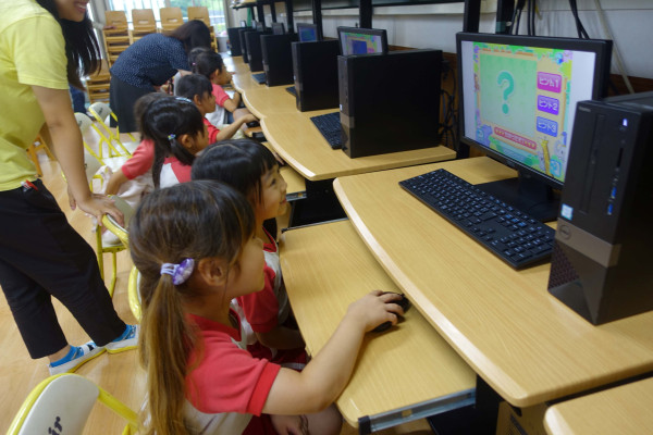 コンピュータプレイ(年長)では目をキラキラ輝かして集中して楽しんでいました