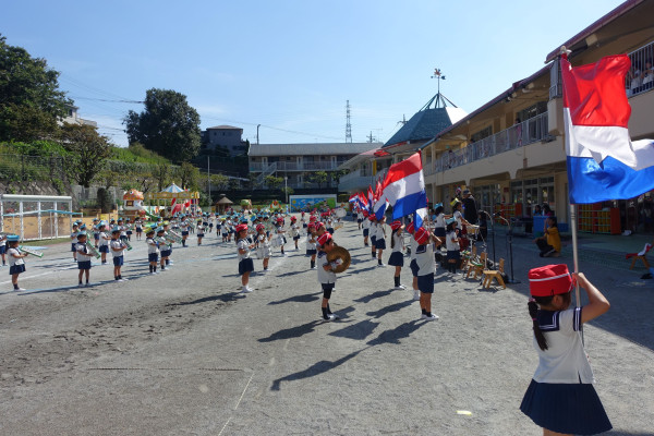 今年度年長運動会でのマーチングバンドは「アニメメドレー」で「さんぽ」「いつも何度でも」「星かげさやかに」(うた)「ディズニーメドレー」を子ども達だけで様々な楽器を使った素晴らしい演奏をご披露いたします。前向きに一生懸命最後まで頑張る姿勢を10月12日(土)ぜひご覧ください。