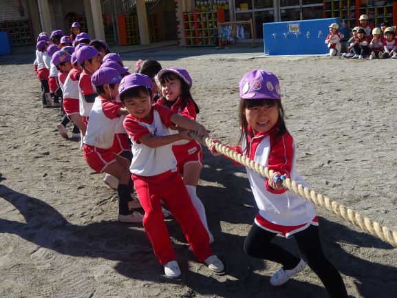 きょうも12月20日としては日中暖かく、子ども達は朝から元気に楽しく過ごしていました。早いもので本日2学期終業式を迎えることができました。終業式では、私の話をしっかり理解して聞け、子ども達ひとり一人の成長を感じさせられました。2学期での様々なことに頑張ったこと、大きくなったこと、楽しかったことをみんなで話し合いました。とにかくどんな事にも失敗を恐れず、「やればできる」の大切さをお話させていただきました。明日からの冬休みでは、けがや病気に気を付けて楽しい年末年始を送っていただきたいと思います。写真は、終業式後の年長ミニ運動会でのつなひきです。ご家族皆様方で、良いお年をお迎えください。