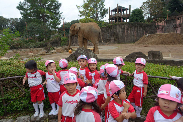10月は運動会、さつまいも観察・・・秋の自然のなか、外での楽しいイベントが続きますが、本日は年少以上全園児が秋の遠足として、多摩動物公園へ行きました。春の遠足同様、全園児が通常のバス、歩きで登園後、チャーターバス等で子ども達とや役員さん、先生のみで幼稚園から現地へ向かいました。心配された天気も早朝で雨もやみ、逆に暑くない爽やかな陽気のなか、みんな元気にたくさん歩き、動物さんもたくさん見ることができました。またお昼もとても美味しくいただいていました。