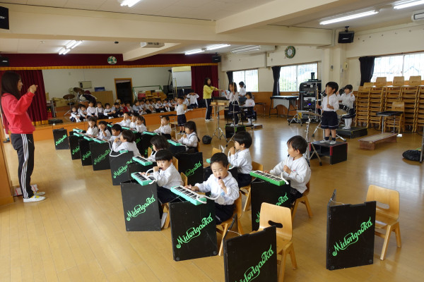 緑ケ丘幼稚園では来月7日(土)パルテノン多摩大ホールにおいて、「クリスマス音楽発表会」を予定しております。いちご組(2歳児毎日登園)を含め、全園児約400名が参加いたします。子ども達はみんなで力を合わせ、音を奏でる素晴らしさを感じながら、とても頑張っています。オーケストラ用の本物の楽器を使用した、幼稚園の音楽会として他に類を見ない感動的なイベントとなり、子ども達に生きる力につながっています。今週から来週にかけて幼稚園ホールにおいて、音楽指導のなかで練習して出来上がっていくことをみんなで楽しむ機会になると思います。