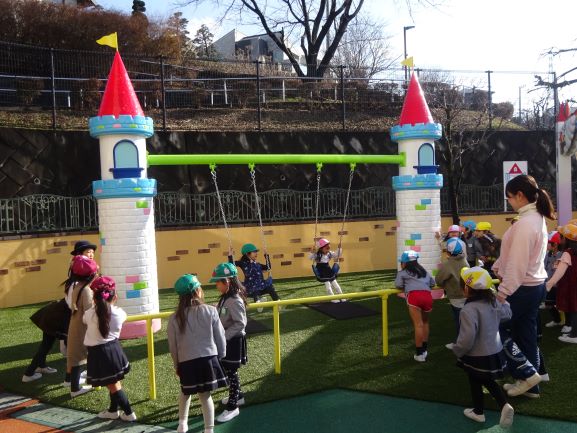 今日午後から天気が回復したため、広い園庭での外遊びが始まりました。年明けに完成したブランコに子ども達は初めて遊ぶことができ、楽しく関わっていました。緑ケ丘幼稚園は園庭が広いため、様々な遊具が配置され、毎年新しくしていますが、大切な幼児期には、とにかく元気にいっぱいからだを動かして、心身共に満たされた生活を送ることを願っています。