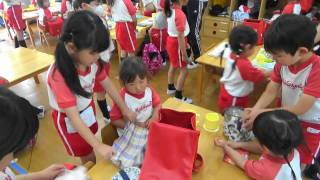 幼稚園のまわりの木々も新緑に覆われ、心地よい陽気となってきました。今日から年少のお友達も制服登園となり、登園後体操服へのお着替えも頑張っていました。一つひとつの「できた」体験が本人の自信や自立の成長につながっていきます。楽しみながら様々な生活習慣を習得できる機会になると思います。この時期年長さんは年少さんのお部屋に入り、様々なお手伝いをしてもらっています。お昼の準備も年長さんがよくやっていただき、微笑ましい姿が数多く見られました。様々な体験を通して、優しく思いやりのある人間にしっかり育っています。