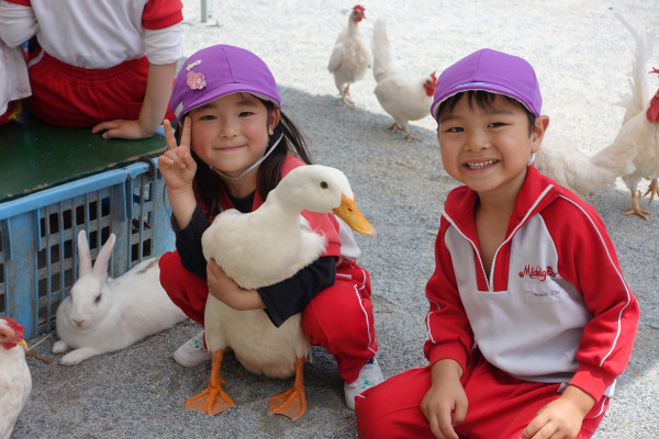 先週の楽しかった春の遠足に続き、本日広い園庭にて「移動動物園」が楽しく行われました。朝からヒヨコやネズミからヤギ、ヒツジそしてポニー等21種192頭の動物さんが広い園庭に集まり、子ども達は興味津々でした。触れ合ったり、エサをあげたり、年長・年中は動物の絵を描いたり、とても楽しく充実した一日となりました。食やいのち、優しさ等心の成長につながる貴重な体験になったと思います。