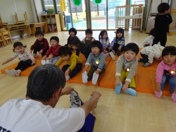 今日のひよこ体操コースでは、マットを使った遊びを数多くしていました。ママから離れてお友達だけで、楽しく元気に取り組め、成長を感じさせられました。走ったり、ゴロゴロ転がったり、でんぐり返ししたり、とても楽しい体験となっています。成田先生のお話もよく聞いて、理解できるようになりました。