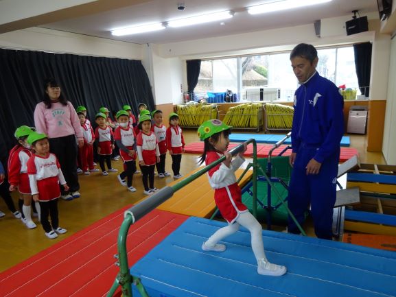 きょうは一日雨が降ったり、やんだりで、子ども達は暖かいお部屋で一日過ごしていました。ひよこ体操コースの後、年中さんはホールにて体育指導を行い、鉄棒さかあがりに挑戦していました。みんなやる気いっぱいで、とてもよく頑張っていました。子ども達が自由遊びのなかでも頑張り、「できた!」が今後の自信に大きくつながります。