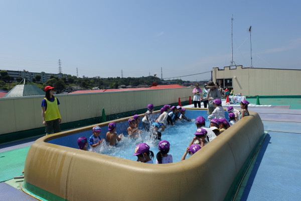 夏季保育が始まっています。子ども達はお友達の遊びの楽しさを実感しながら、元気に過ごしています。8月のお誕生会やプールでの水遊びも楽しんでいます。少しずつ生活リズムが戻り、来週からの2学期の園生活を元気に送っていただきたいと願っています。