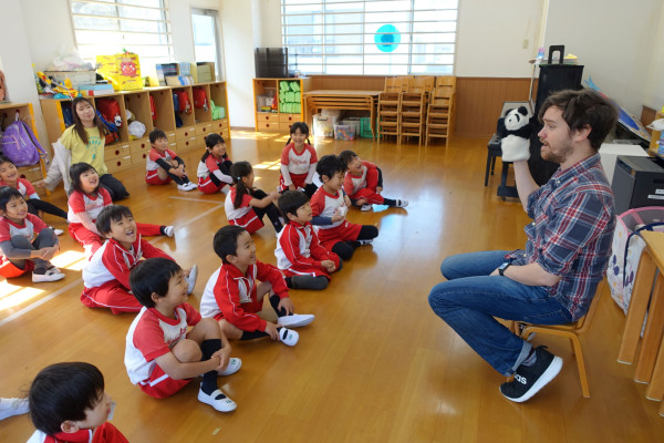 週明けの月曜日、明け方は厳しい寒さとなりましたが、日中は芝生の園庭には日があたり、子ども達は日だまりのなか元気に楽しく遊んでいました。ふかふかの人工芝では、転がったり座ったり思い思いの遊びが展開されています。本日の一斉保育では、年長各クラスではアダム先生の英会話指導が行われました。本日も子ども達は笑顔いっぱいで楽しく参加し、英語での受け答えや理解も大分進んでいるようです。とにかく幼児期に本物の英語体験は、異文化を知り、様々な人のコミュニケーションの芽生え等とても大切な一つと考えます。
