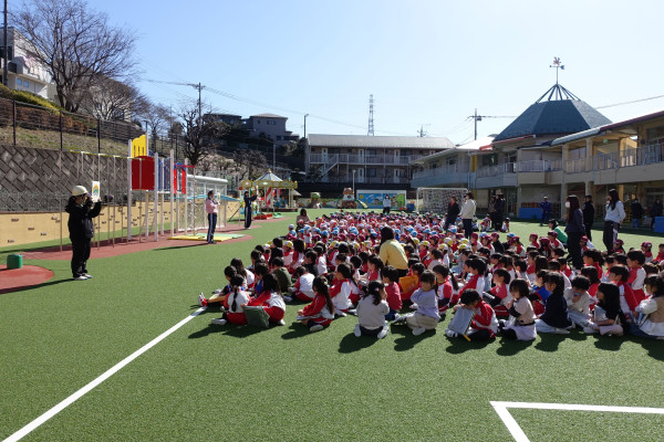 朝晩は寒さが感じられますが、日中芝生の園庭には日だまりができ、子ども達は伸び伸びと楽しんで遊んでいました。本日全園児で地震の避難訓練を初めて予告なしで行いました。子ども達はいつも通り落ち着いて避難でき、日頃の積重ねがしっかり出来ていることを感じさせられました。特に「体操順に並ぶ」という習慣は、いざという時にとても大切であると考えます。なお本園は地域のなかの学校教育機関としては唯一東京消防庁より「