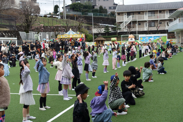 今日は曇り空の肌寒い一日でしたが、子ども達は元気いっぱいに楽しく過ごしていました。年長のお友達は芝生の園庭において、前半エイベックスのリーコ先生指導による「ダンス発表会」後半成田先生等審判によるクラス対抗のサッカー・ドッジボール大会に参加しました。最初に幼稚園生活初めて全員で私服に着替え、ダンスではtimelessの曲を軽快に楽しく踊ることができました。サッカー・ドッジボールでは最後まで真剣に集中して頑張っていました。卒園まで残りわずかの保育日数となりました。引き続き一人ひとりのお子様が楽しく、素晴らしい思い出ができるよう、配慮してまいります。